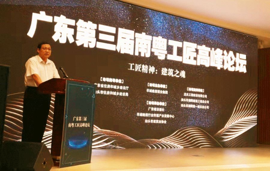 羊城晚报副社长李宜航指出,第三届广东“南粤工匠”高峰论坛选择在汕头举办,有着深厚的时代背景、文化背景和行业背景。当前,全省上下正在扎实推进“不忘初心牢记使命”主题教育活动,举办“南粤工匠”高峰论坛恰逢其时。汕头是著名的建筑之乡,建筑企业多,从业人员多,产业规模大。在汕头举办第三届“南粤工匠”高峰论坛,有利于进一步推动挖掘、提炼建筑之乡丰富深厚的建筑文化,有利于提升建筑之乡的影响力和感召力,有利于工匠精神的弘扬与传承。
