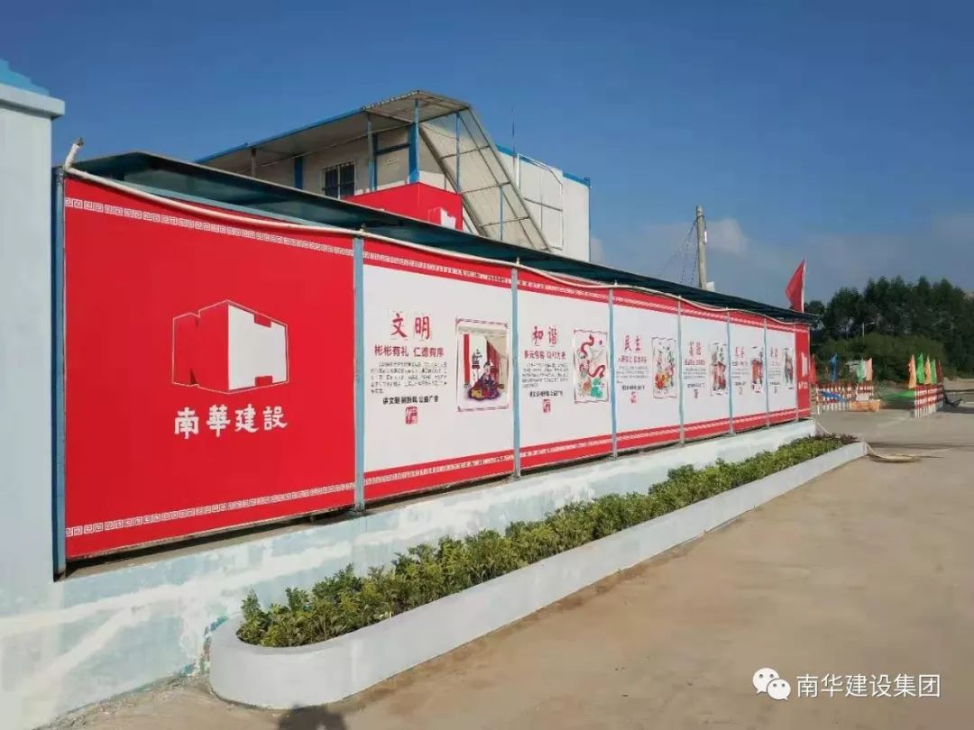 2、现场围挡,施工现场采用稳固、整洁、美观的木塑板进行连续、密闭的围挡,围挡高度都不低于2.5米,外挂宣传彩图。