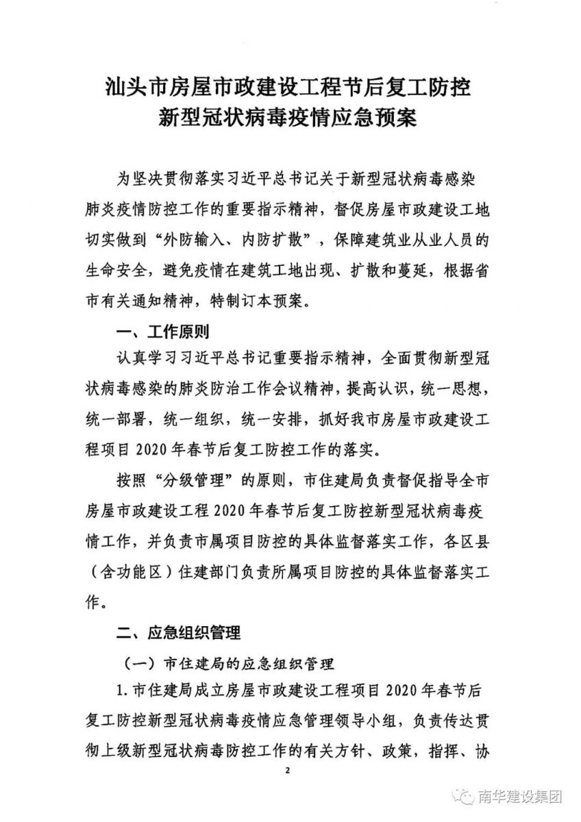 关于印发汕头市房屋市政建设工程节后复工防控新型冠状病毒疫情应急预案的通知