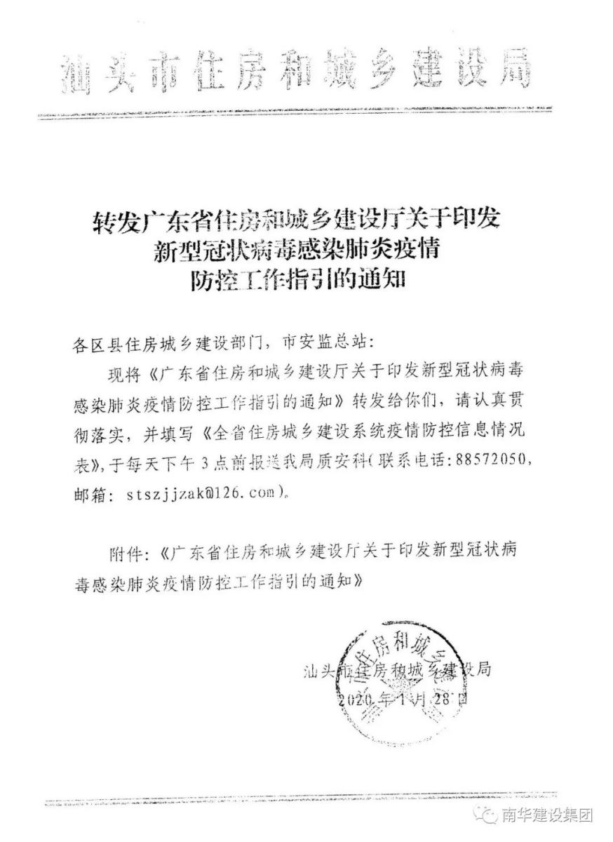 关于印发汕头市房屋市政建设工程节后复工防控新型...>>