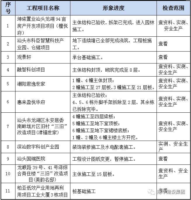 根据《汕头市住房和城乡建设局印发的关于全市城乡住房建设领域重点行业安全生产大检查的通知》、《关于做好国务院安委会2023年省级政府安全生产和消防工作考核巡查开展专项排查整治行动自查自改工作的通知》的要求、重大安全事故隐患专项排查整治,集团公司本季度重点对在建项目建筑起重机械、高支模、深基坑、高处坠落、预防坍塌和施工消防安全等工程分别进行了专项检查,重点检查以下专项工程的落实情况: