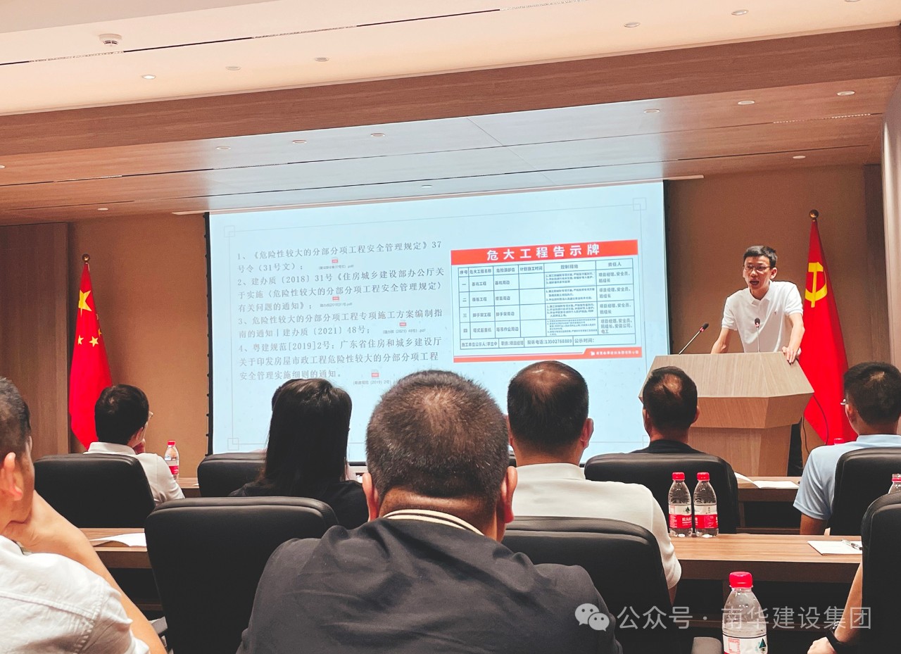 质安部经理就现行规范标准《建筑与市政施工现场安全卫生与职业健康通用规范》GB55034-2022、《房屋市政工程生产安全重大事故隐患判定标准》强制性条文进行详细解读,在施工过程中如何做好质量管控和安全监管,严格按照规范和标准进行操作,根据项目实际情况,提前做好风险评估和预案,确保工程建设能够安全有序地进行;针对危大工程要根据相关文件要求,从如何编制危大工程专项方案,并进行“二审批一论证一反馈”工作,建立危大工程公示牌、专项台帐和隐患台帐,掌握危大工程实施动态情况,各项目落实责任和措施,严格按照文件规定和要求,做好各个阶段、各个环节的安全管理工作;关于近期市场行为检查的重点,要按照《汕头市住房和城乡建设局关于对开展2024年第一季度农民工工资支付、违法发包、转包、违法分包和计价活动常态化整治检查的通知》,建立完善的安全生产管理组织体系及人员实名制管理制度,认真做好实名制工作;针对工程项目中分包和违法发包进行讲解;在工程承包合同中工程款支付约定不能以进度节点进行支付,必须以每月进行支付,且不低于月度工程款的15%划入工人工资专用账户。