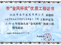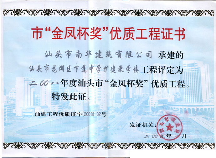 下篷中学扩建教学楼金凤杯证书