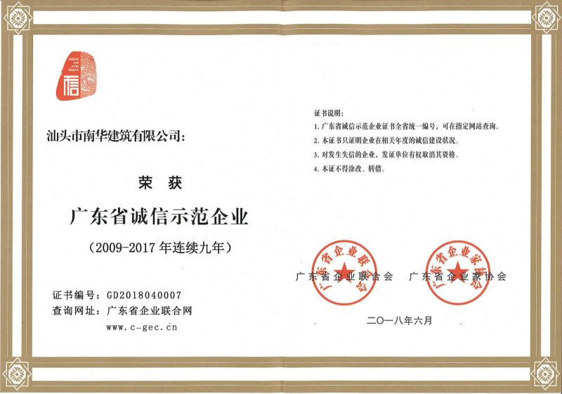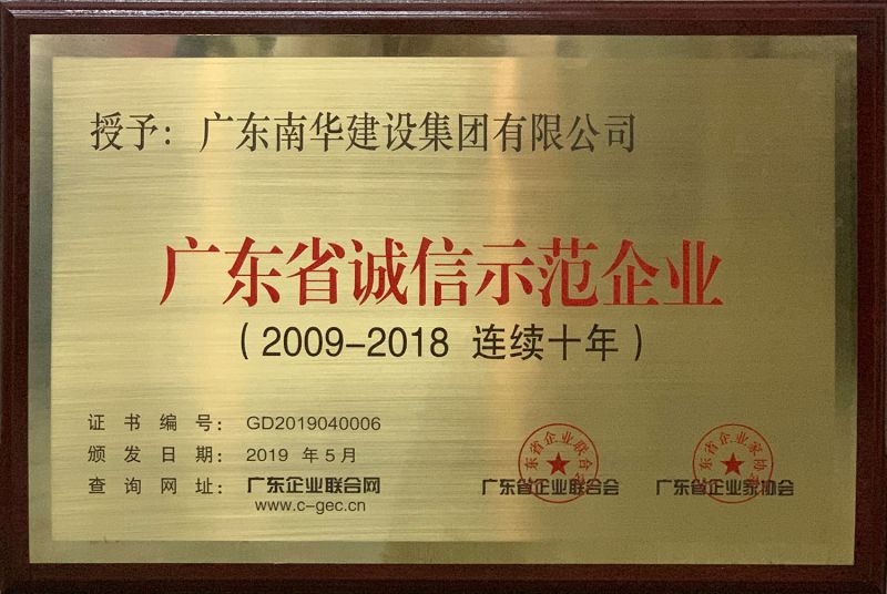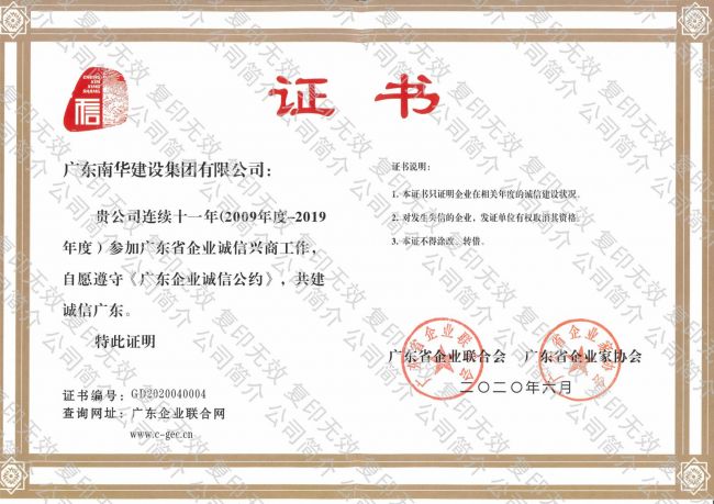 广东省连续十年诚信示...