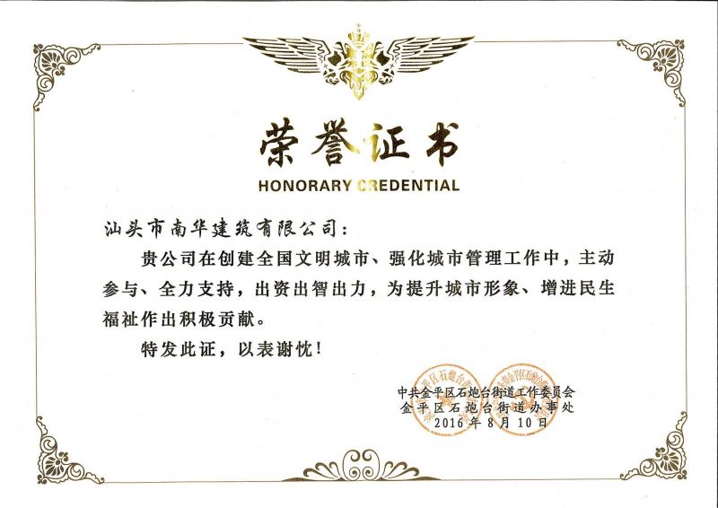 公司创文荣誉证书