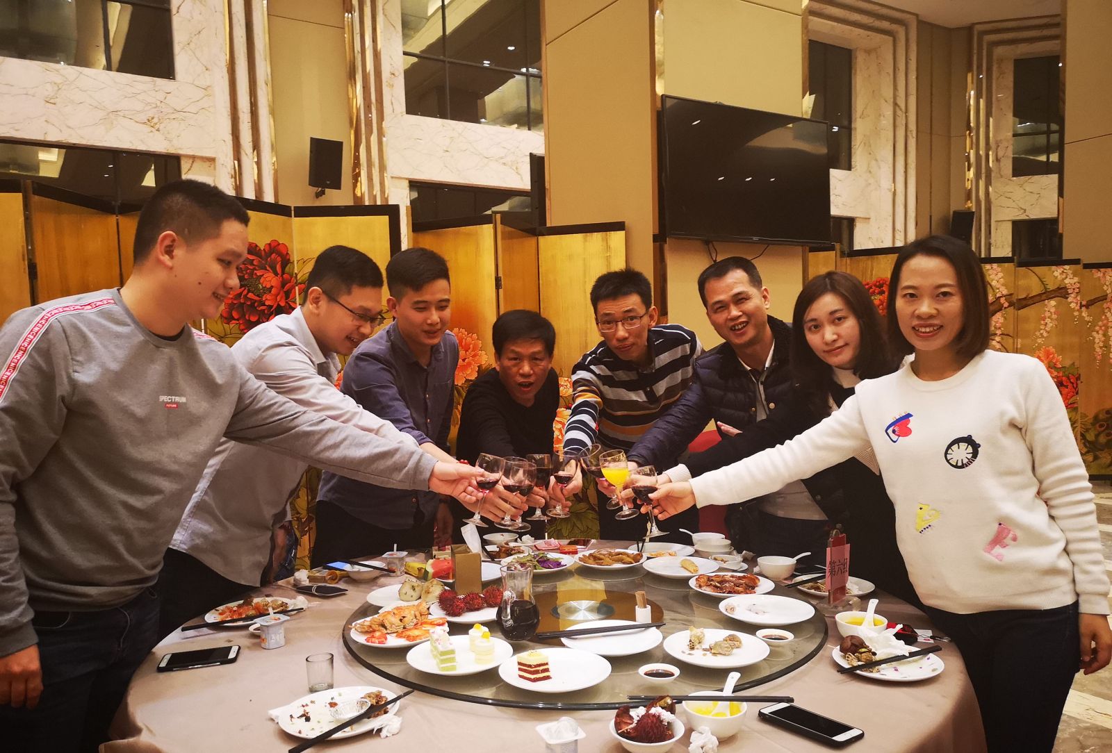 年会以丰富的自助晚餐形式进行,大家举杯共庆,迎接崭新的2019年!