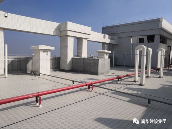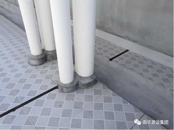 屋面隔热砖铺贴平整,砖缝顺直,走水顺畅,细部做工精细;排气管道排气通畅、顺直美观;天沟顺直、排水坡度正确,无积水。