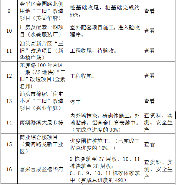 以下16个项目工程接受本次检查。