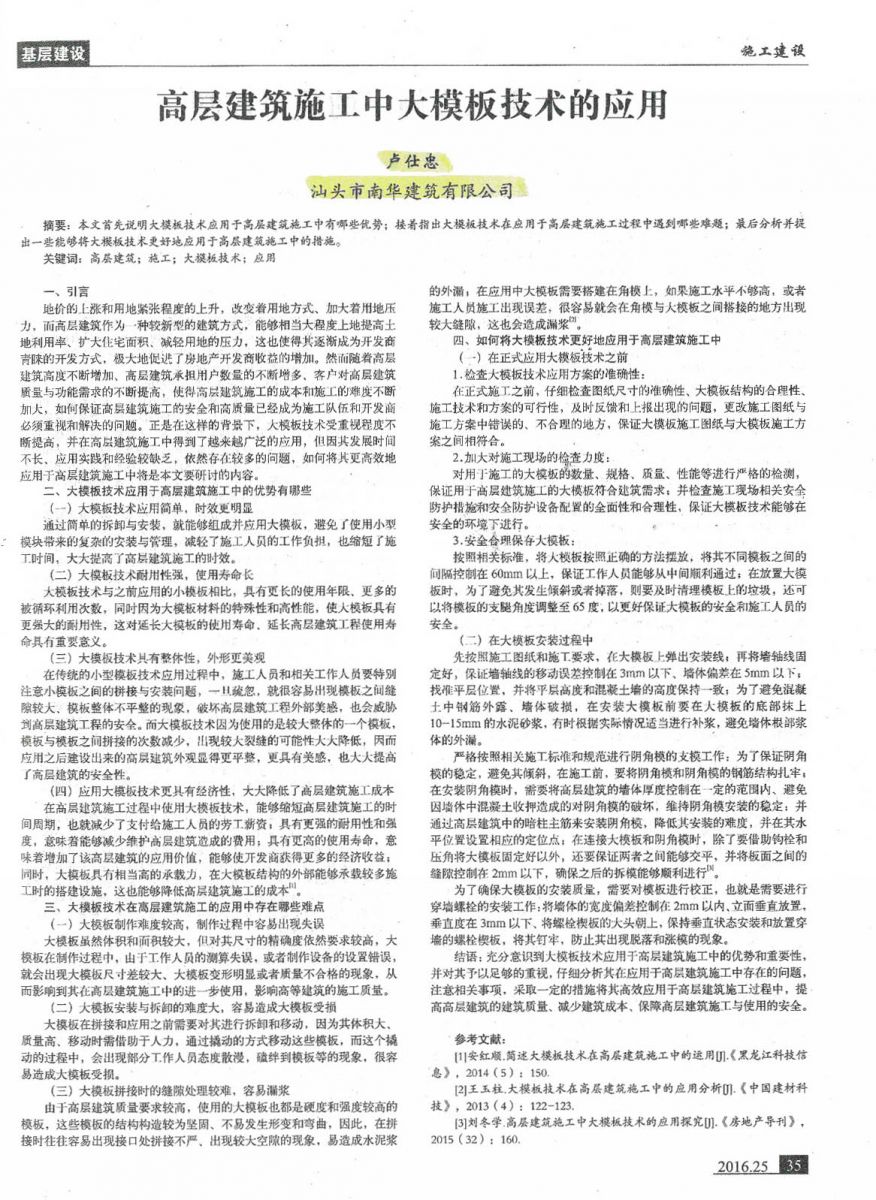 论高层建筑施工中大模板技术的应用(卢仕忠)
