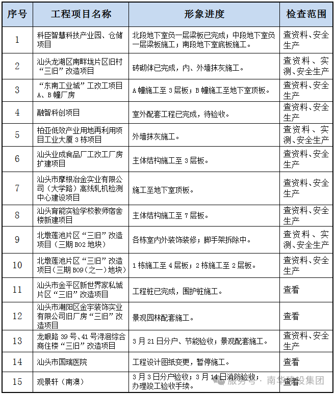 以下15个项目工程接受本次检查。