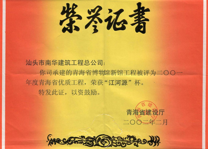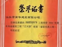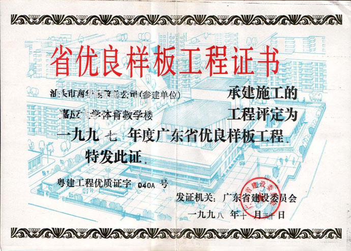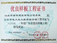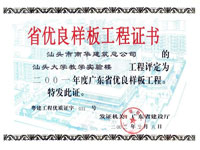 汕头大学教学实验楼 省优良证书