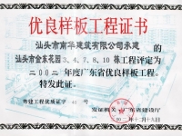 汕头金东花园省样板证书.