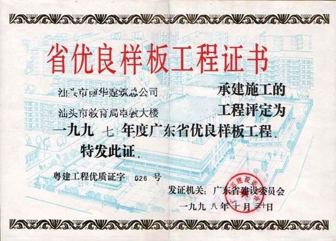 汕头电教大楼省样板证书