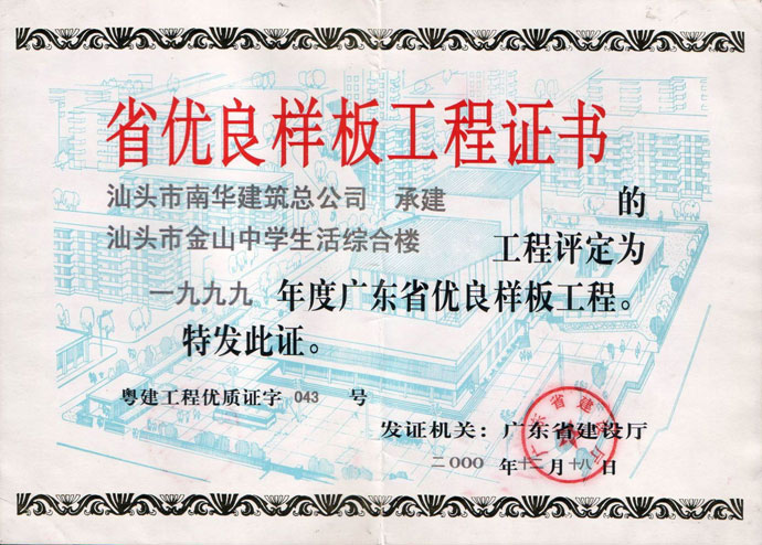 汕头市金园综合楼 省优良证书
