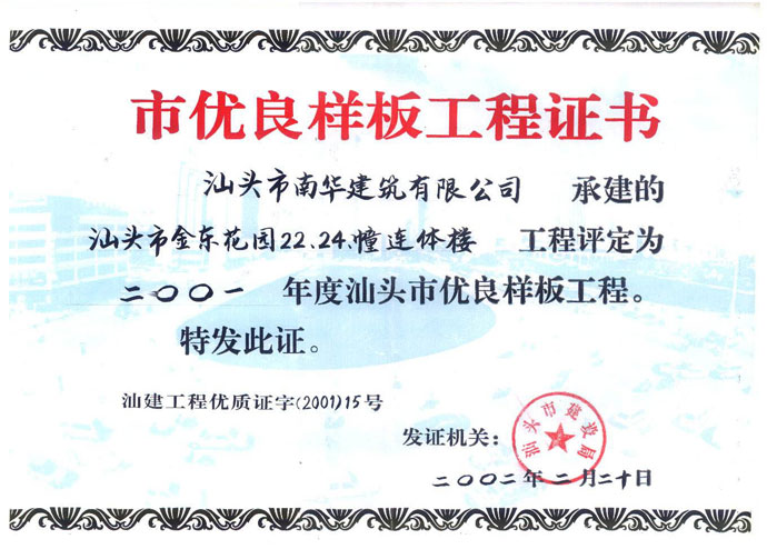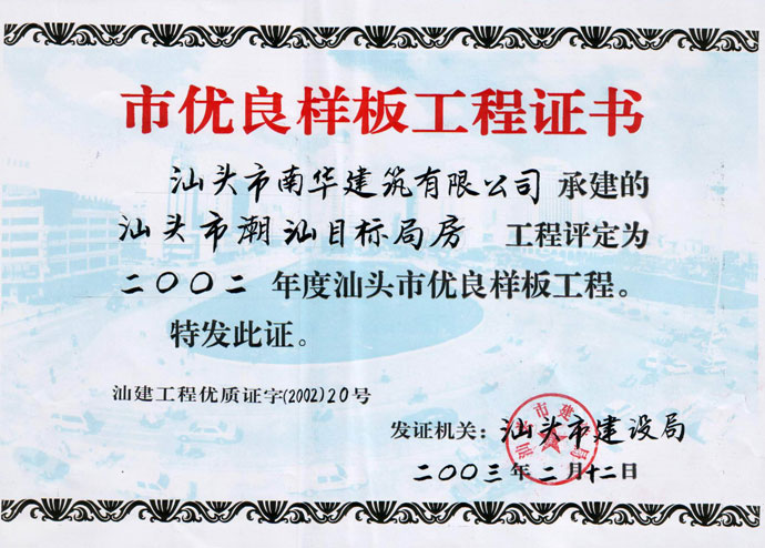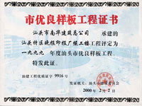 汕头市潮阳目标局房 市优良证书