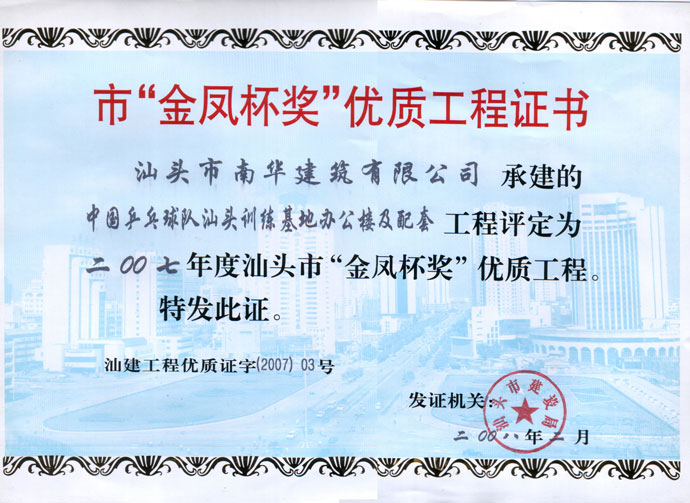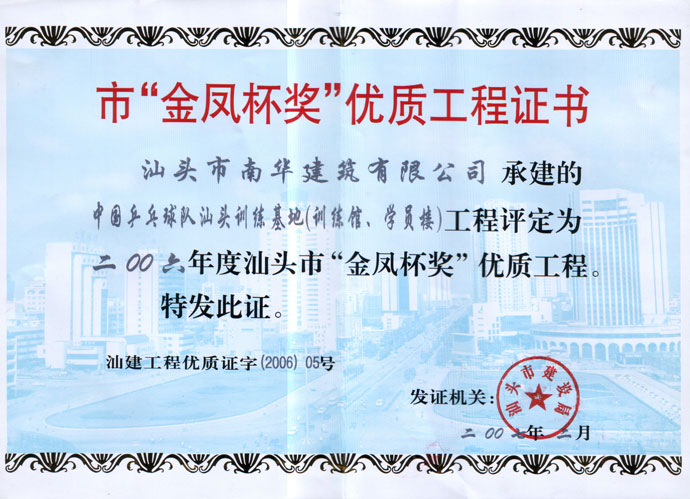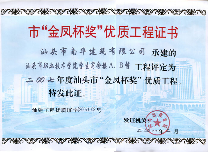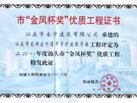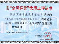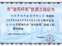 下篷中学扩建教学楼金凤杯证书